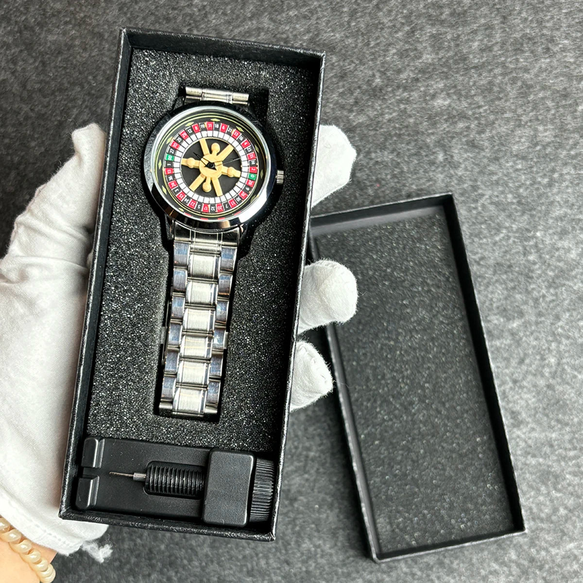 2025 New Men's Roulette Watch Sporty Style Fashion Steel Strap Round Unique Turntable Men's Gift Watch