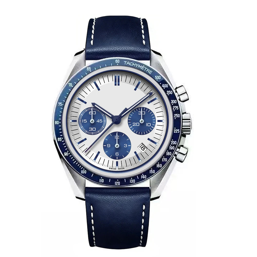 2026 New Men's Watch Multifunctional Sports Chronograph Men's Watch Top Brand Luxury Men's Quartz Watch Leather Strap