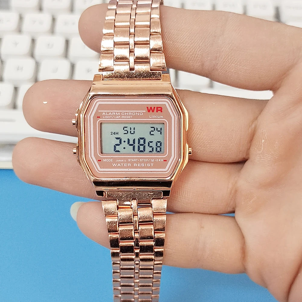 Elegant Digital Watch For Women Gold Silver Stainless Steel Business Ladies Electronic Wrist Watches Man Clock Zegarek Damski