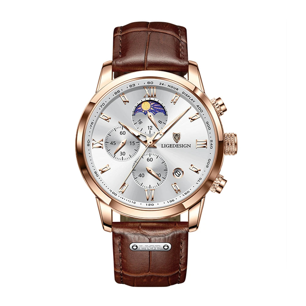 LIGE New Casual Men Watch Luxury Leather Waterproof Sport Quartz Wristwatch Chronograph Military Watch for Men Relogio Masculino