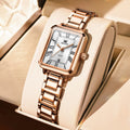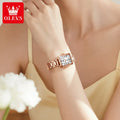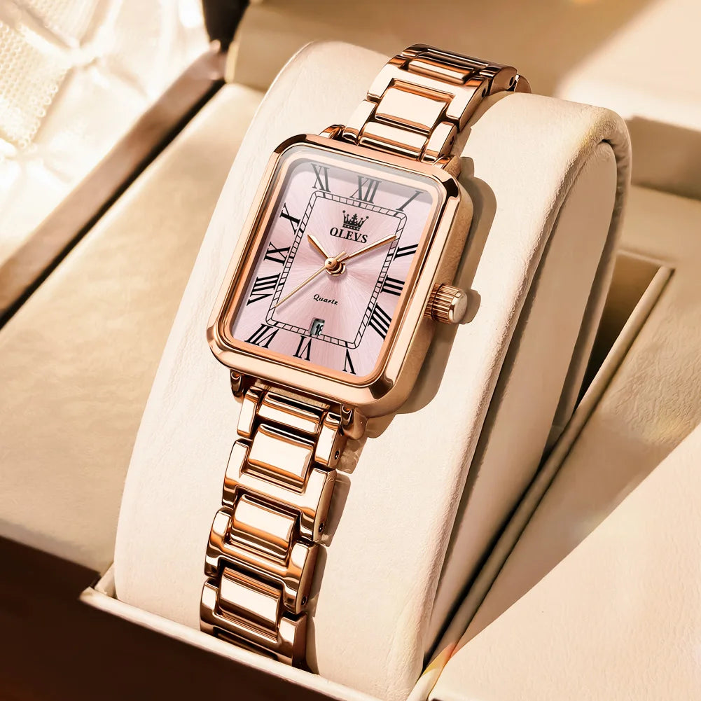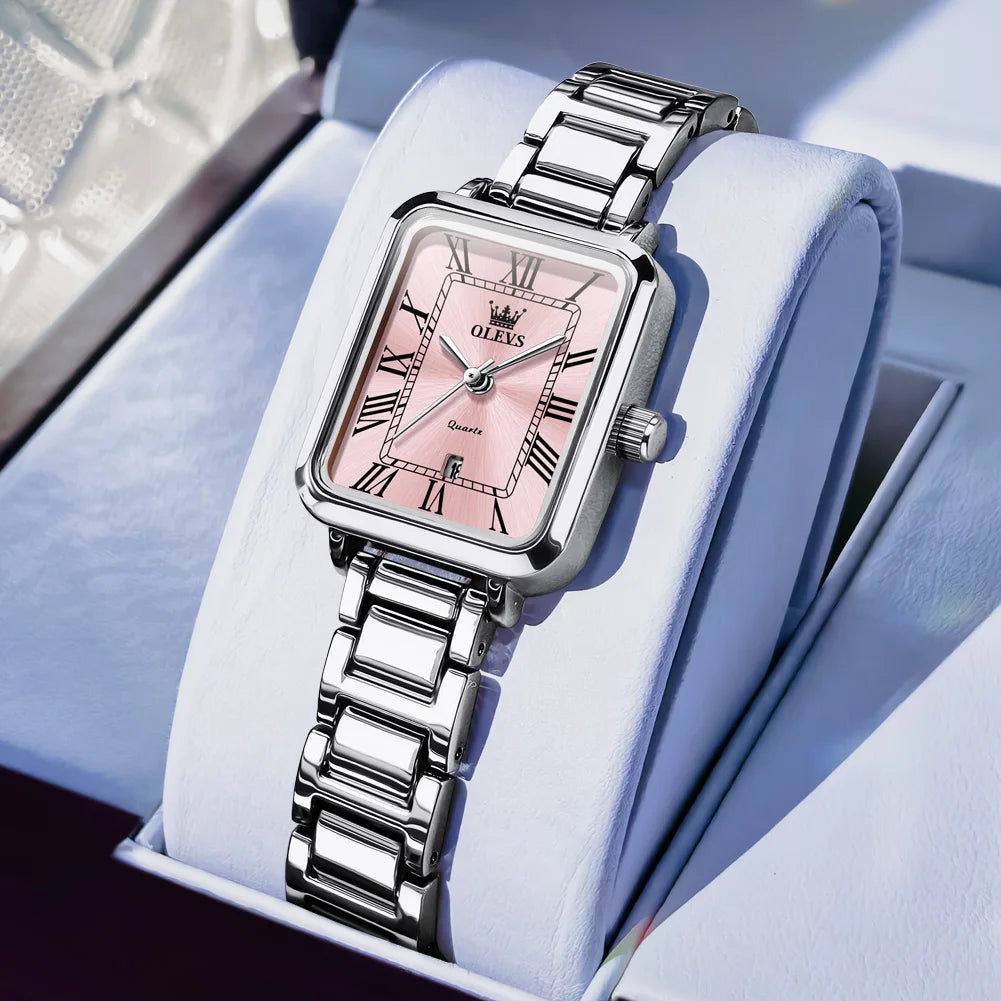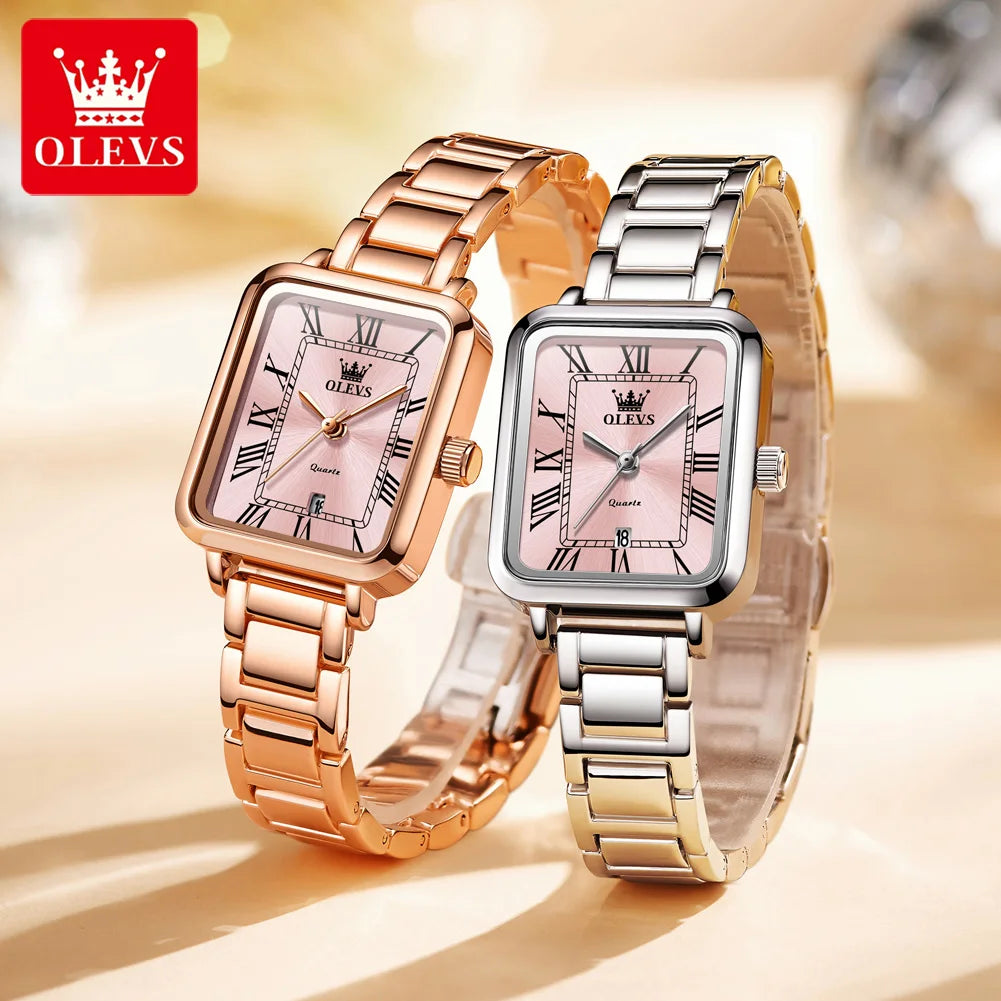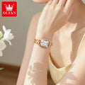 OLEVS Women's Watches 5641 Luxury Fashion Square Original Quartz Watch for Lady Rose white Dial Waterproof Date Stainless Steel