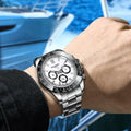 Unique luminescent design: The oversized hour markers and broad-leaf hollowed-out hands are coated with a high-performance luminescent material, emitting a dazzling glow in the dark. Whether on a solo deep-sea dive or a nighttime journey, this light clearly indicates the time like a lighthouse, allowing you to precisely control your pace and remain calm even in the dark.